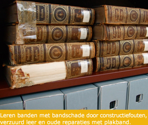prenten en kaarten. De foto's rechts laten een serie leren banden zien met